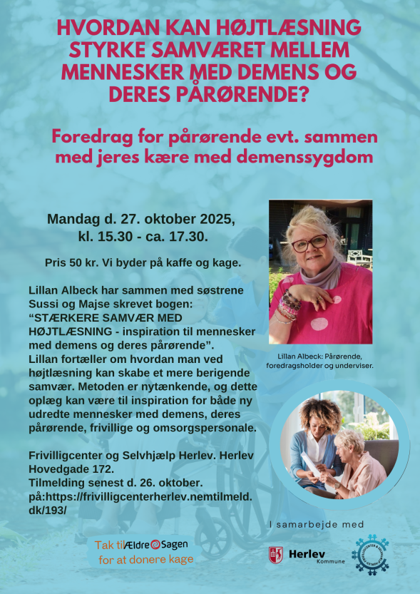 Lillan fortæller om hvordan højtlæsning kan skabe et mere berigende samvær for begge parter. Metoden er nytænkende og dette oplæg kan være til inspiration for både nyudredte mennesker med demens, deres pårørende, frivillige og omsorgspersonale.